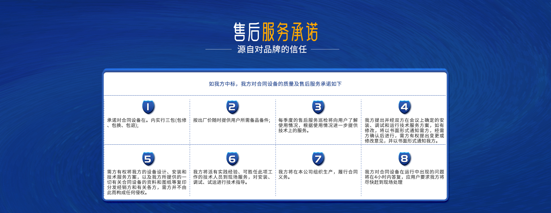 我公司技术力量雄厚、工艺水平先进、检测手段完善、产品质量可靠;以开拓、创新、求实、质量作为立足之本,重合同、守信用、优服务是我公司的宗旨。我公司充分发挥技术,人才优势,坚持“质量,用户至上、人无我有、人有我优”的发展方针,开拓进取,开创未来。