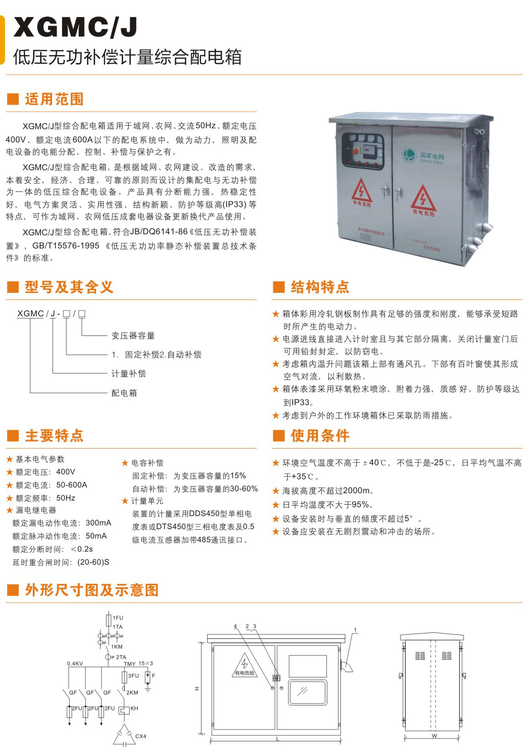 XGMCJ低压无功补偿计量综合配电箱